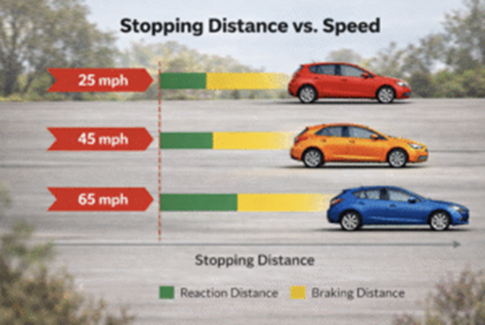 Following too closely leaves almost no time to react. Even a minor distraction — adjusting the radio, checking mirrors, or tapping the brakes — can lead to a collision.